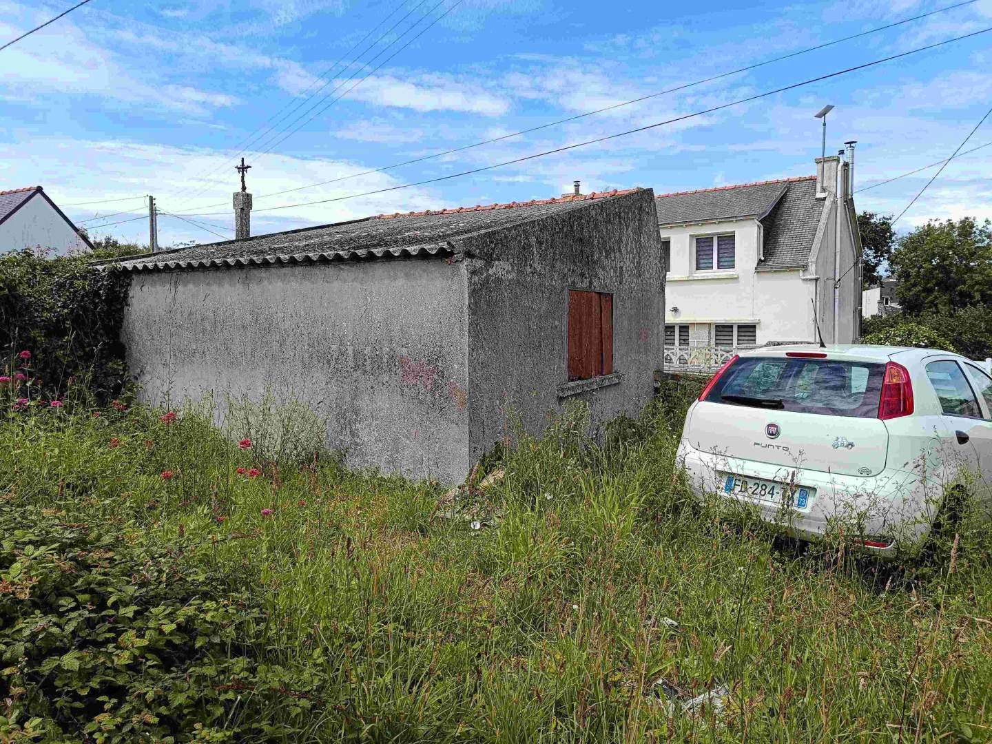 Réf. 3727 : PLOGOFF, Proche Mer, Idéal pour pied-à-terre, Garage sur terrain de 262 m² environ. CU positif pour transformation en habitation et extension de 15 m². PRIX : 53.000 € dont 3.000 € H.N. (6 %) charge acquéreur – Classe énergie : Non requis – Classe climat : Non requis